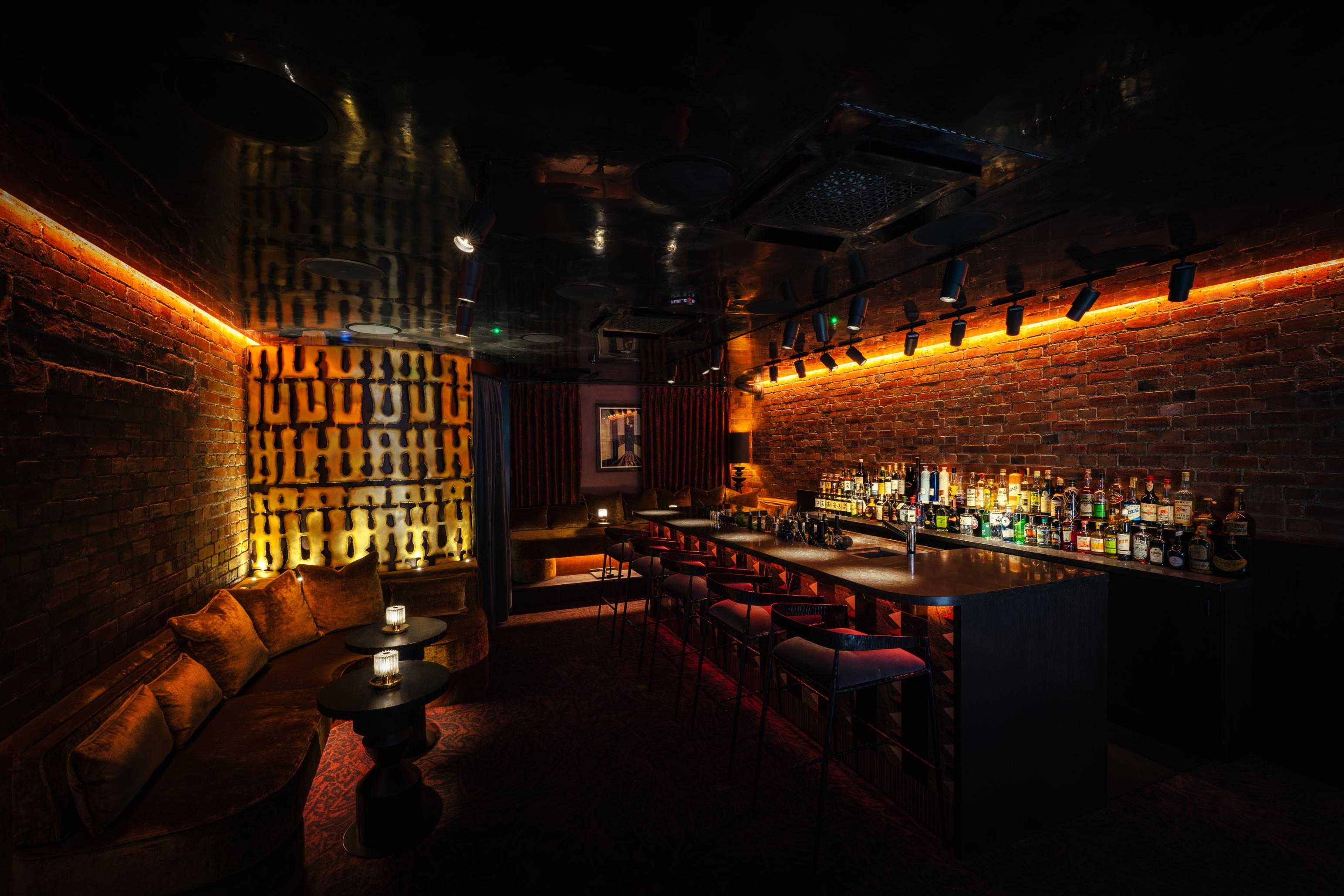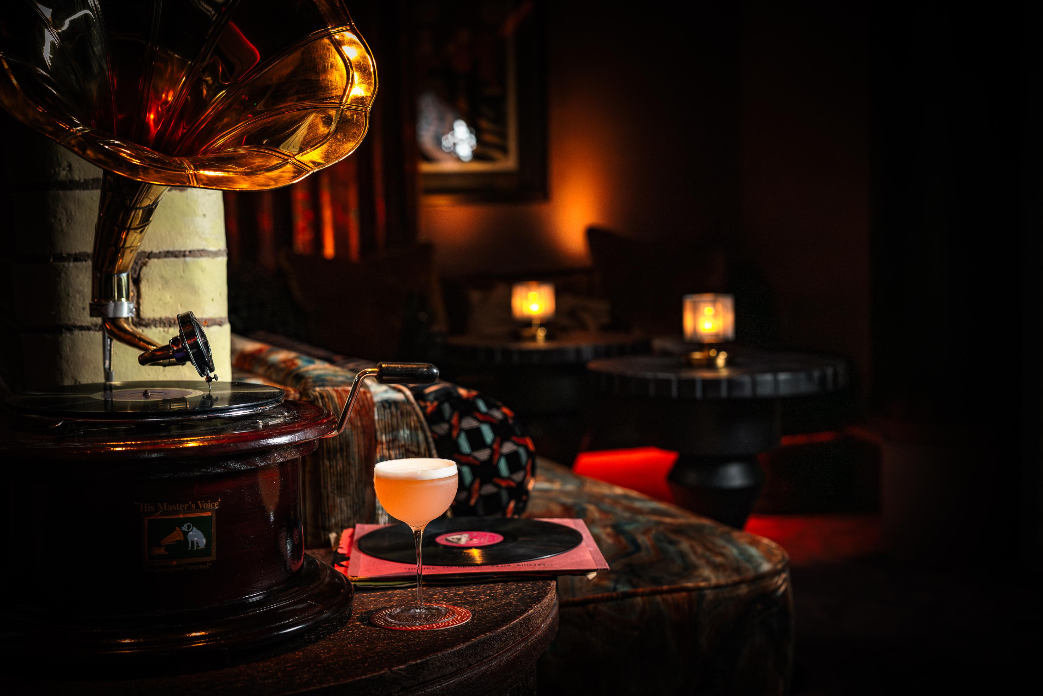 Intimate seating nooks, upholstered in plush fabric with brushed metal detailing, bring a contemporary flair to the Fin de Siècle architecture. This design provides a haven for inspired conversation. Additionally, the bar features walls of exposed brick and dark woodwork accents, along with an eclectic collection of lore-inspired relics. Notably, a one-of-a-kind gramophone allows guests to access recordings of iconic Hippodrome headliner performances from its 124-year history, creating the perfect soundtrack for their evening.
