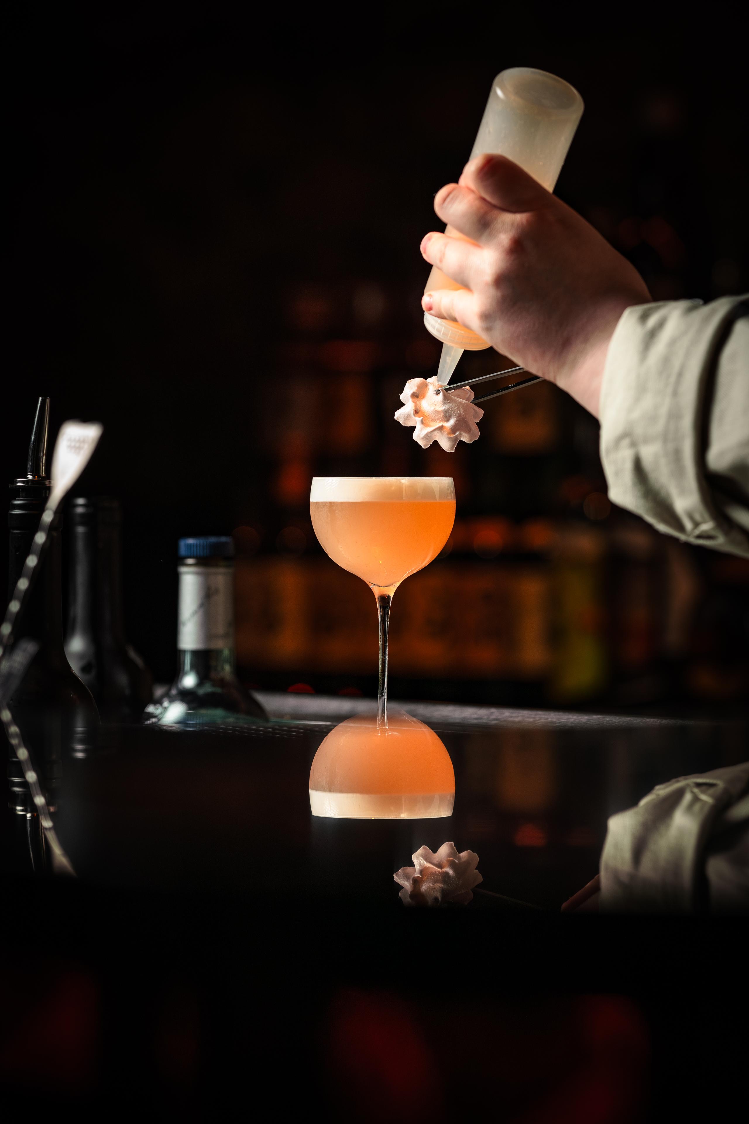 - Soixante-Quinze: Elderflower, Gentian, Dry Torrontes, White Chocolate, Gin, Lemon Oils