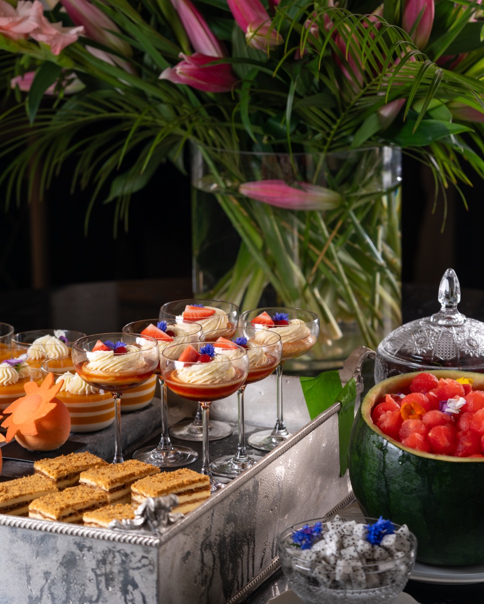 After the buffet, you can then choose a main course like a poached egg and avocado on sourdough, elevated with scallion pesto and a sweet and sour yuzu dressing. Coconut pancakes are accompanied with wild berries and jam, matcha green tea cream, Thai basil, and maple syrup. For a more traditional lunch, there is also a roast option. Choose from whole corn-fed chicken, beef rib eye or braised lamb leg roasts with all the trimmings like proper duck fat roasted potatoes and a giant Yorkshire pudding. There is also a grilled fish of the day on offer too as a lighter yet elegant option.