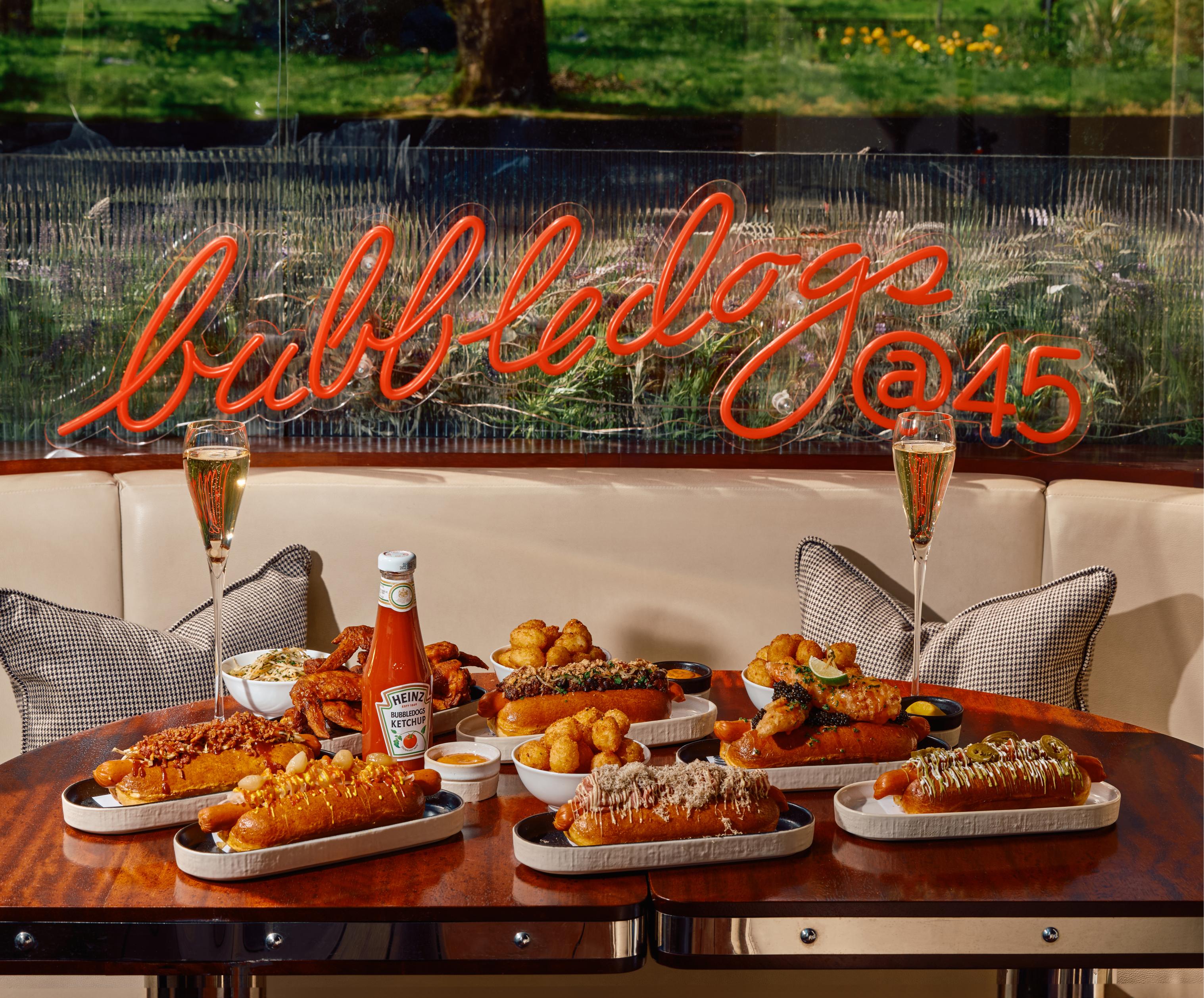 Famed Champagne and hot dog concept, Bubbledogs, makes its triumphant return this summer at 45 Park Lane from 10 May 2024 in an alfresco pop-up at 45 Park Lane’s exclusive 22-seat terrace: CUT Out.