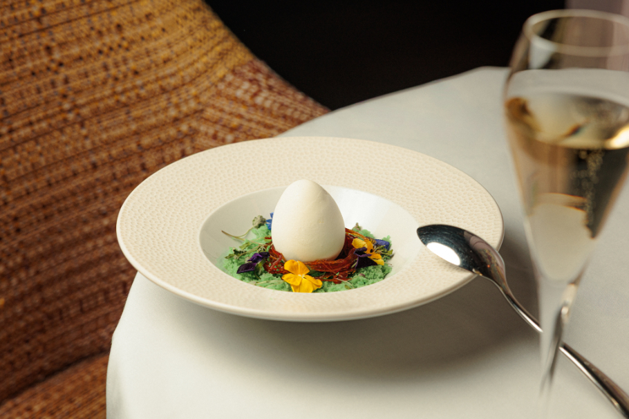 Her interpretation of the egg feels deliberate rather than literal. It is not novelty for novelty’s sake, but a thoughtful translation of the show’s themes into flavour, texture and presentation. The result is a menu that feels light, seasonal and expressive — perfectly suited to an evening built around creativity and performance.