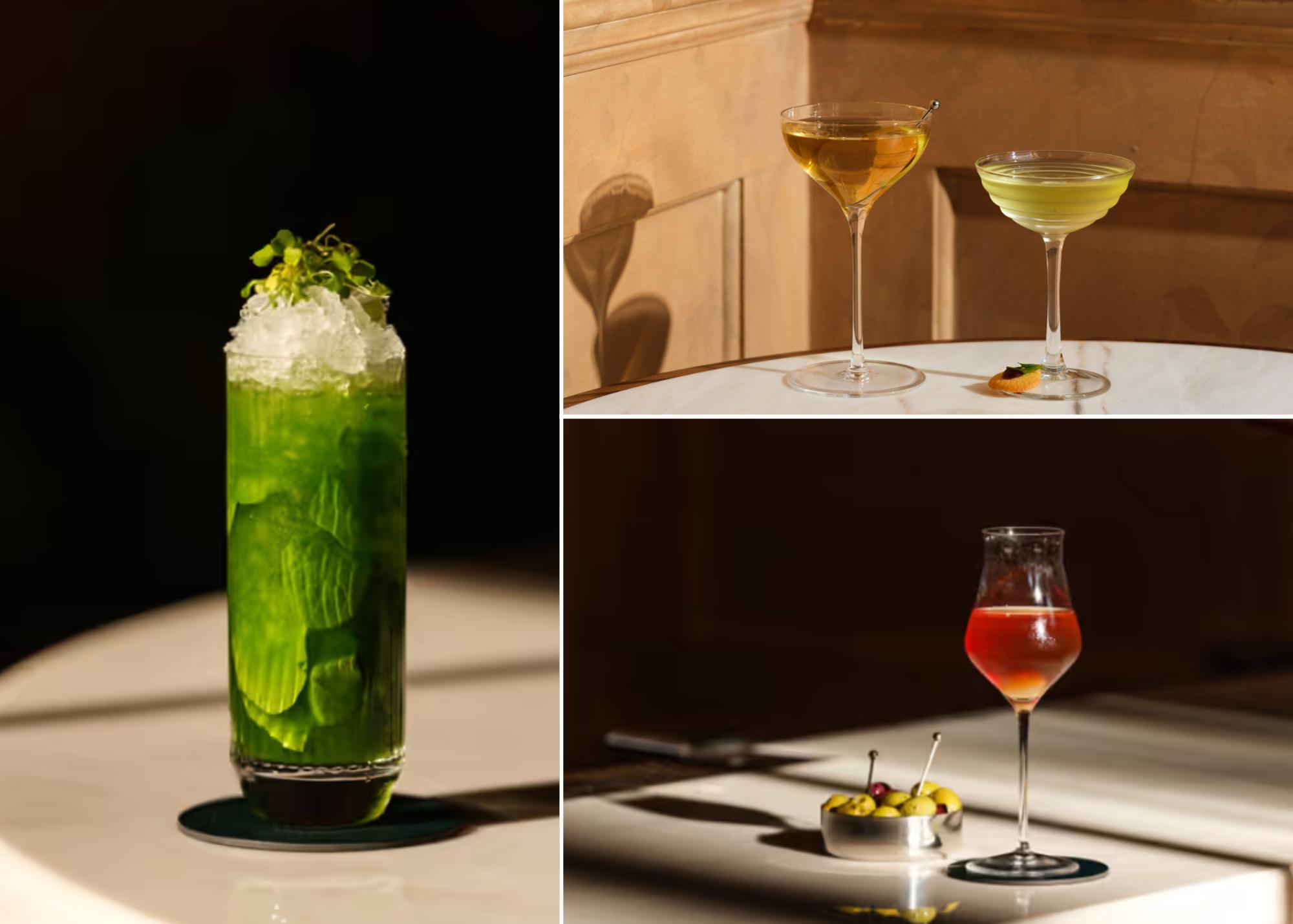 Creating a truly organic and artistic spectacle, Sprout has been meticulously designed and decorated by mainly London-based craftspeople and British artists. Decorative artist Tess Newall hand-painted a unique mural along Sprout’s wall. With layered silhouettes of branches into a textured lime-coloured background and a whimsical incorporation of leaves and buds growing along selected branches, even the walls reflect the energy of the place. Inside Sprout, thoughtful design choices echo the drinks: every detail has purpose, but nothing feels overthought. It is a place for guests to pause, look around, and savour every moment – and sip.