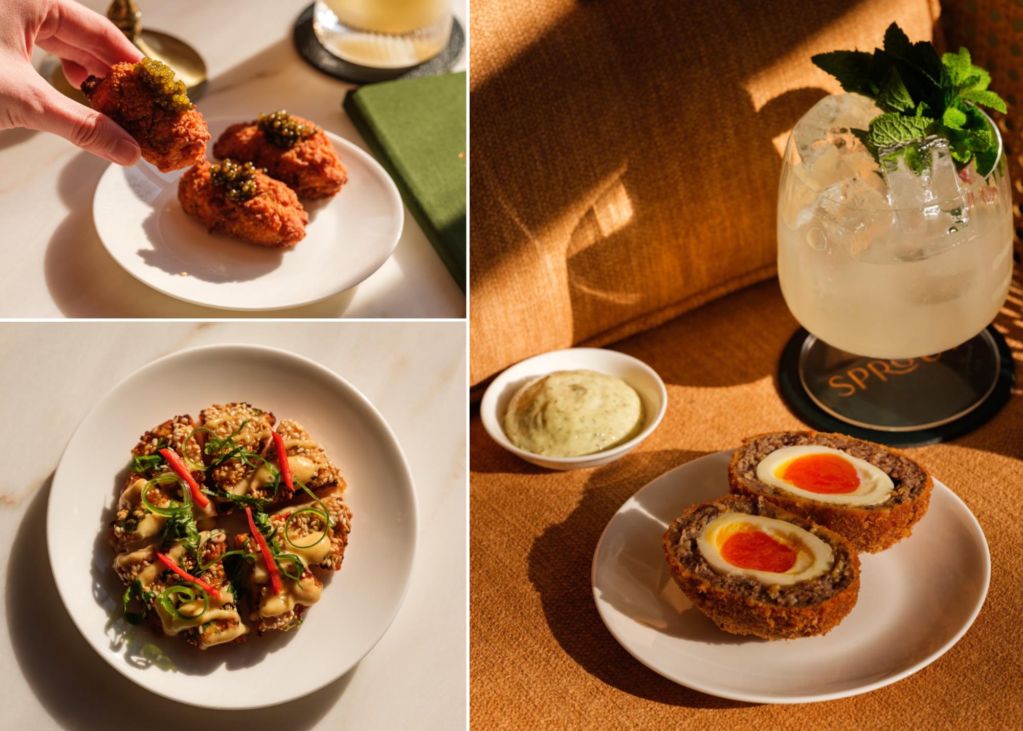 As a combination to each drink, there is an equally creative dish. Sprout’s snack menu is a thoughtfully curated complement, yet each plate has its own creative twist. From the bold crunch of spiced shrimp toast to the elegant crispy chicken wings topped with caviar, each option has its own personality.