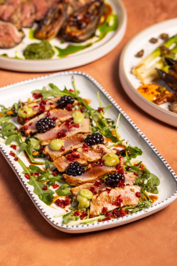 Among the larger plates, the Grilled Chicken Ras-el-Hanout stands out, served with roasted sweet potato purée and crispy sweet potato strings for a satisfying, aromatic dish. For those craving something richer, the Beef Shawarma is a must-try, featuring tender beef with house pickles, dates, pine nuts, and tahini, all carefully served atop a warm pita. The Lamb Tagliata is another favourite, paired with zhoug, more of that yummy hummus, glazed shallots, and dukkah, offering a balanced combination of spice and freshness. Fish lovers can enjoy the Seared Tuna, complemented by a tangy pickled ginger vinaigrette, avocado purée, and the sweetness of blackberries, or opt for the Whole Crispy Seabass, served with a chilli-date molasses, pomegranate, and fresh herbs for a tantalising contrast of flavours.