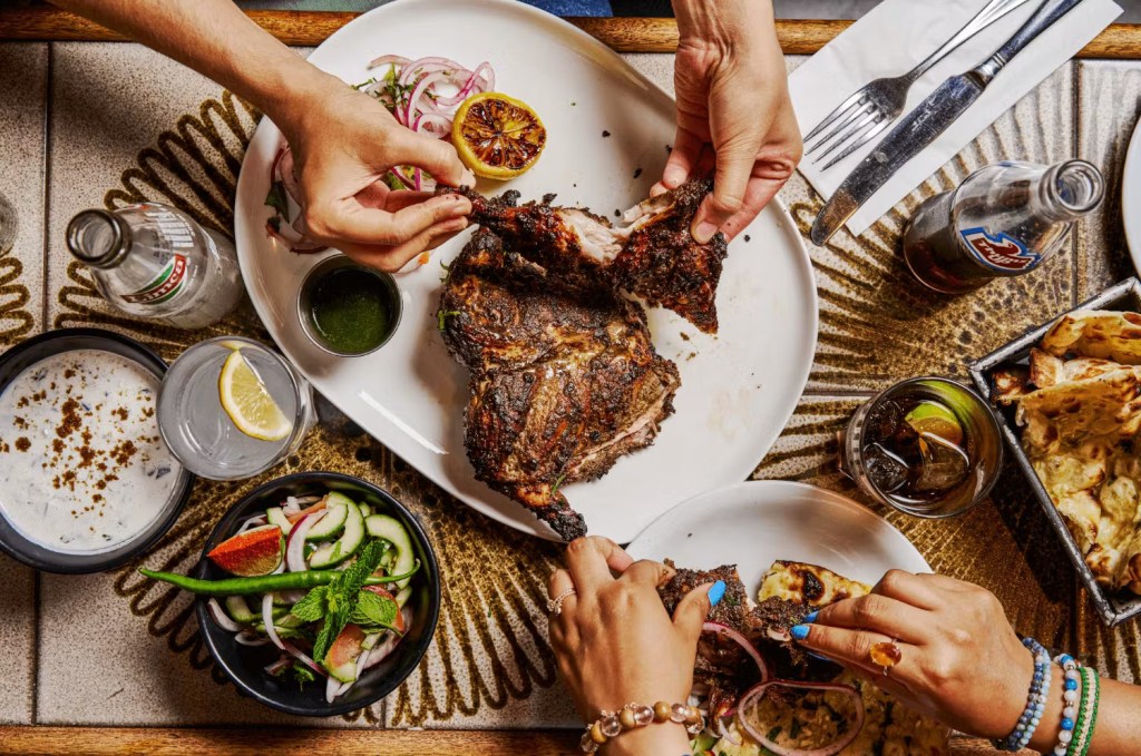 The menu at Dishoom Battersea features a Chef’s Special dish: the Bhatti Chicken. A somewhat forgotten cousin of the famous Tandoori Chicken (Bhatti is another name for anything cooked with fire), it is marinated in black spices, for an earthy, smoky flavour and striking dark hue. Found in a few Bombay eateries under the name Black Chicken, it is a dish also particularly close to Chef Rishi Anand’s heart since it was cooked by his father every Sunday in the family’s small portable tandoor, with some untraditional flourishes that have been retained for Dishoom. The dish can be enjoyed on the bone, in whole or half portions, with fresh green chutney and onion lachcha salad. This is the most juicy Indian chicken you have ever had.