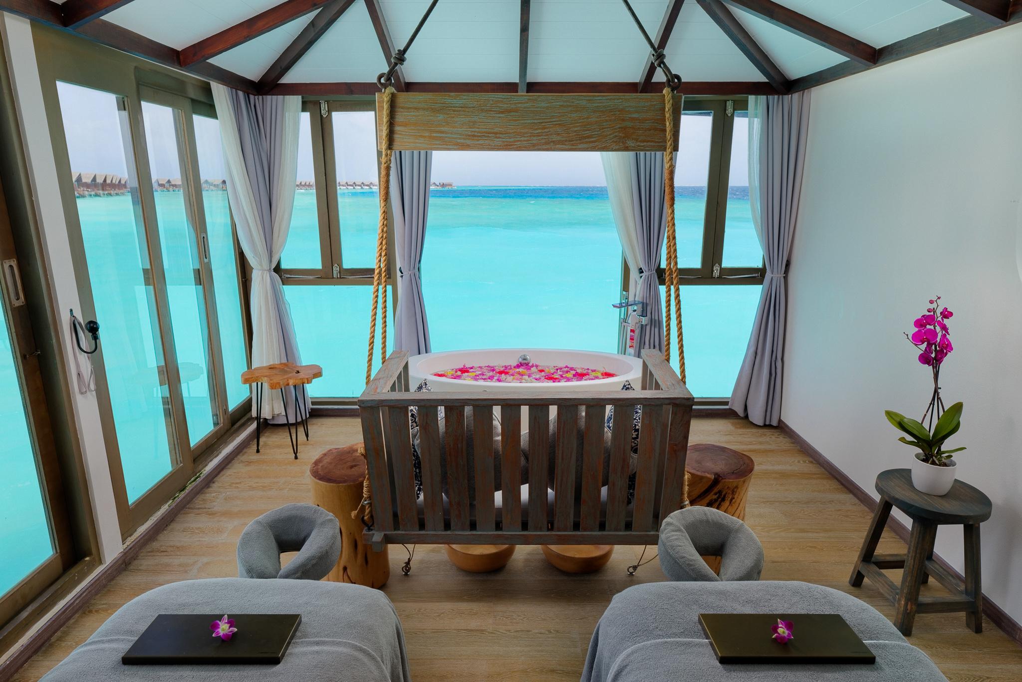 Overlooking the crystal-clear waters, the spa at Grand Park Kodhipparu was recognised as the Continent Winner for 2023 Luxury Boutique Spas. With seven overwater rooms offering uninterrupted lagoon views, this serene retreat will surely lift away any stress you have. Drawing from Balinese and Ayurvedic traditions, the treatments include signature massages that promote relaxation and renewal, body wraps that hydrate and rejuvenate the skin, and facial treatments for a radiant glow. The spa can also customise a signature treatment tailored to your specific needs, ensuring you leave feeling fresh and light. In addition to the therapies, you can enjoy calming yoga sessions, with daily complimentary classes led by the Resident Yoga Master. Choose from Hatha, Aerial, or Sunset yoga, designed to relax the mind and soul. Sessions are held twice a day, at sunrise and sunset, with private lessons available upon request.