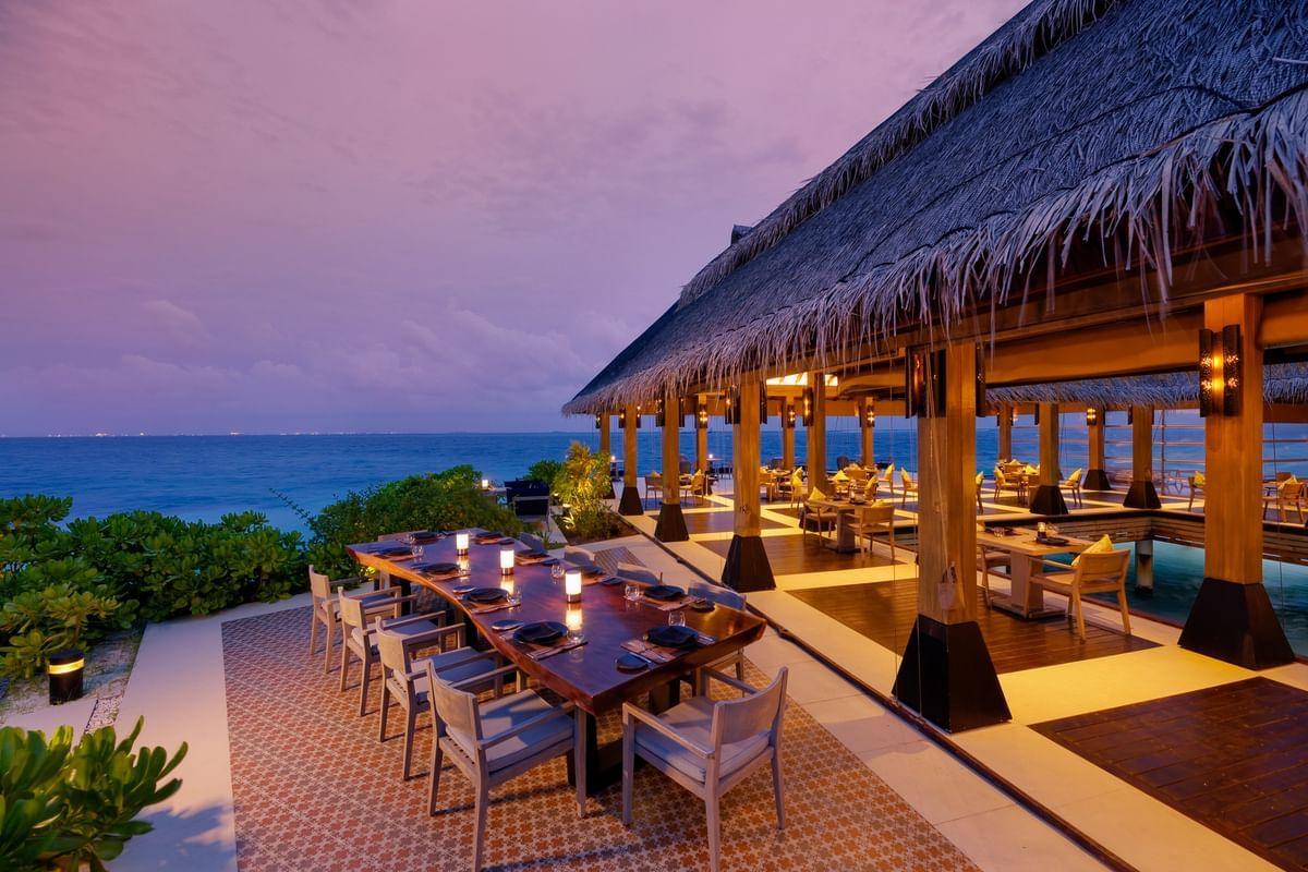 Some like to feel the sand beneath their feet first thing in the morning and listen to the waves lapping against the shore—that’s where the Beach Pool Villa comes in, surrounded by lush greenery and complete with a private plunge pool. But if you want to lavish up your stay even more, or travel as a larger group, the Grand Residence is a beautifully designed water bungalow featuring two bedrooms, a living space, and two bathrooms. You’ll even get to watch Maldivian fish swimming from the villa’s glass floor—cool, right? The panoramic view here is simply breathtaking both day and night when you can stargaze while dining in the private sanctuary.