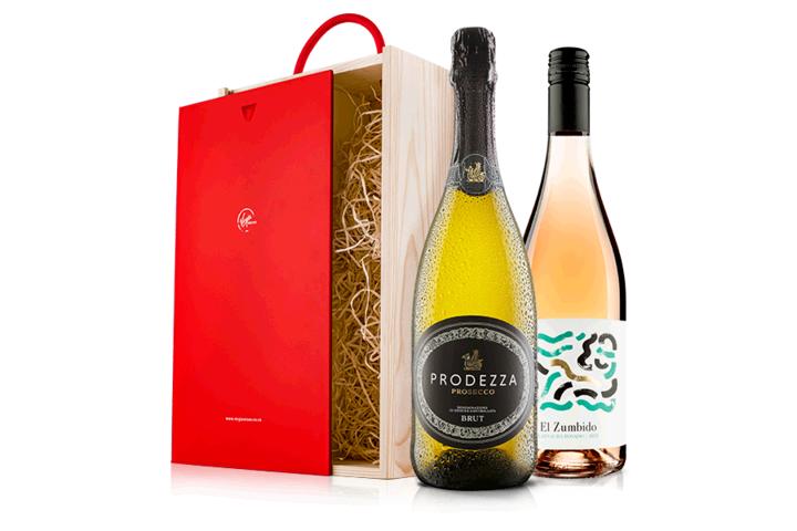 Prosecco and Rose Wine in Wooden Gift Box
