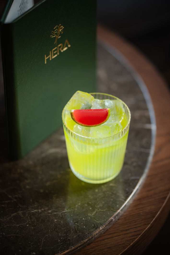 A must-try is of course HERA’s namesake cocktail. Expect the unexpected. The taste doesn’t resemble anything you would have tried before. Herby and extra smooth. This cocktail does not disappoint. And if you want to try a second one, the Muses Kiss will provide you with another tasting adventure! And while you sip your drink, notice the music softly playing in the background: it really enhances the atmosphere and your cocktail experience.
