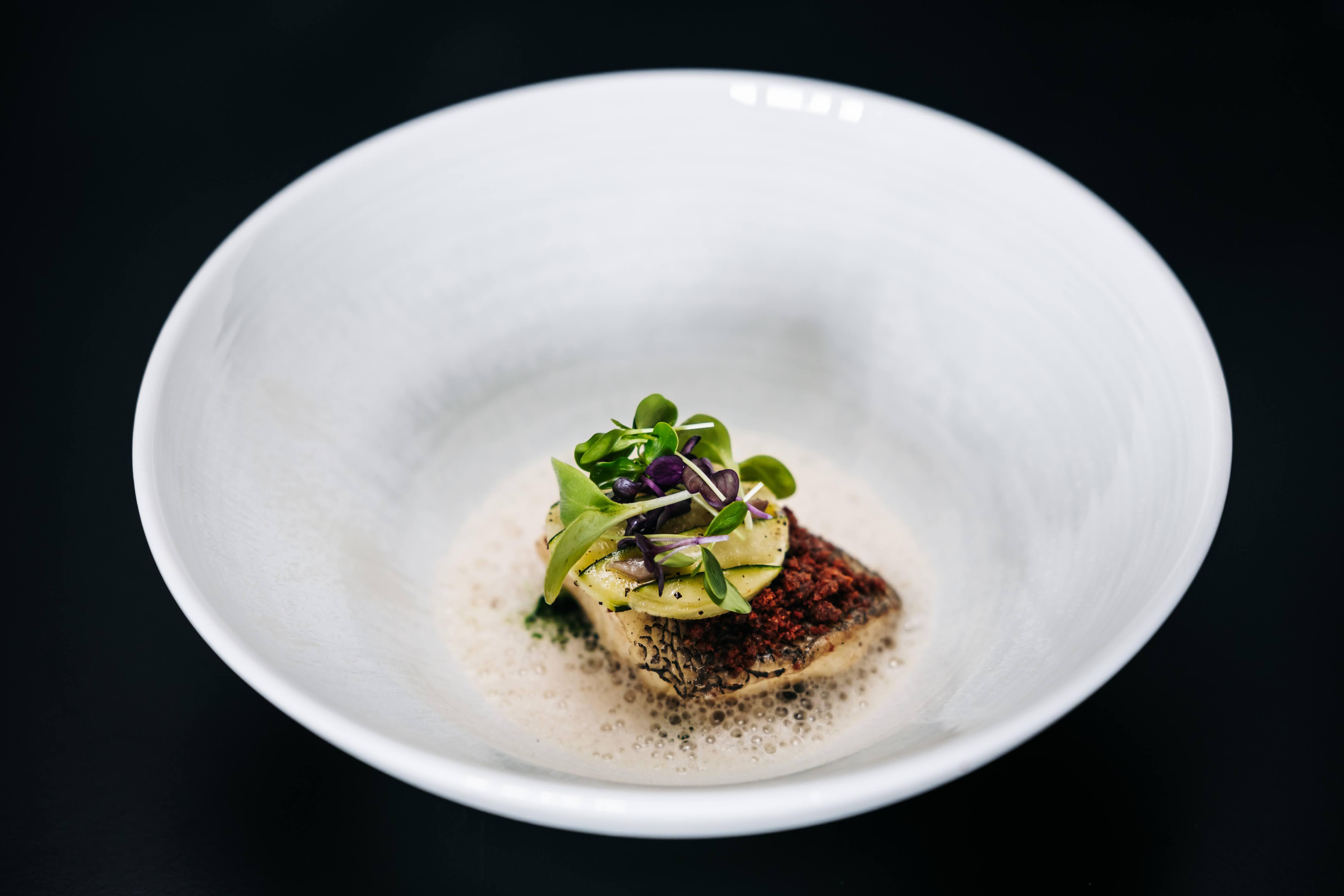 Onto the main course, I chose the signature Roasted Glacier 51 cod fillet. It’s served with zucchini carpaccio, spinach, bouillabaisse, as well as chorizo powder and sauce. The dish’s flavours amazed me, combining Japan’s sweet spinach, and balancing it with spicy chorizo sausages. While the codfish was tender itself, the zucchini carpaccio added a nice texture to it. If you’re a fish lover, there’s also the light yellowfin tuna fillet, marinated in their “Milano-Torino” cocktail sauce. It also comes with pan brioche and Doubanjiang mayonnaise.