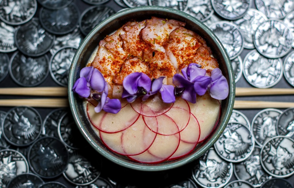 The menu highlights a selection of other Gotham City-inspired storytelling dishes alongside the modern Japanese delights, some of which are flamboyantly finished at tables, providing a thrilling theatrical experience for diners. Stand-out dishes include a nod to The Penguin’s synonymous weapon of choice with the inspired Man of a Thousand Umbrellas, a mushroom umbrella-shaped parfait complete with umeboshi and crispy gyoza skin; ‘Heads You Live’ Chawanmushi, a savoury dashi egg custard with pickled daikon topped with grilled octopus and thinly sliced radish — an allusion towards Harvey Dent known as ‘Two-Face’. Other notable dishes include Tea for Mr Wayne? — tea-smoked duck breast served with udon noodles and a ginger Earl Grey broth; “Scare” Crow-quettes, crispy croquettes with gochujang aioli and black garlic crisps named after The Scarecrow.