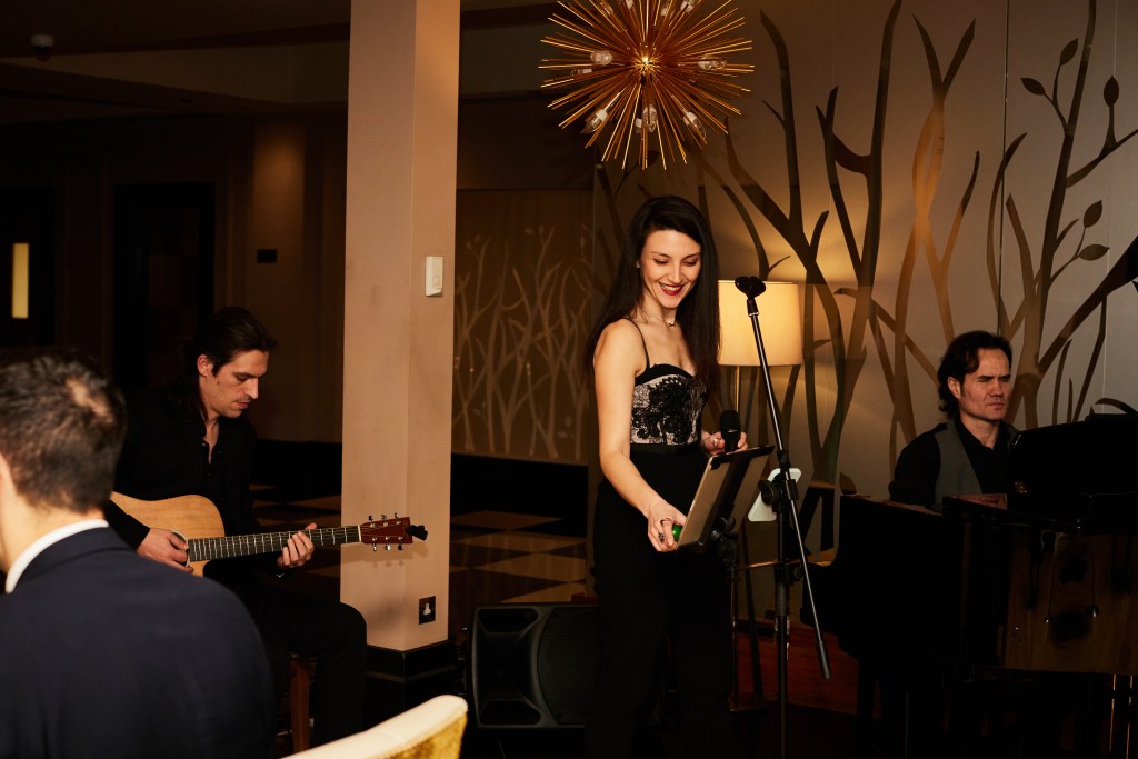 Tonight, Adriana Blu and her band will perform at the Chelsea Harbour Hotel for the first time. Blu, an acclaimed Spanish artist who has performed at various music venues and festivals throughout Spain, is now part of London’s live jazz and Latin music circuit. Adriana’s sensual vocals lend themselves well to singing Latin jazz. She demonstrates her oeuvre when she sings classics such as Chan Chan by the Cuban ensemble Bueno Vista Social Club. Blu puts on a wonderful performance, and the diners show their appreciation.