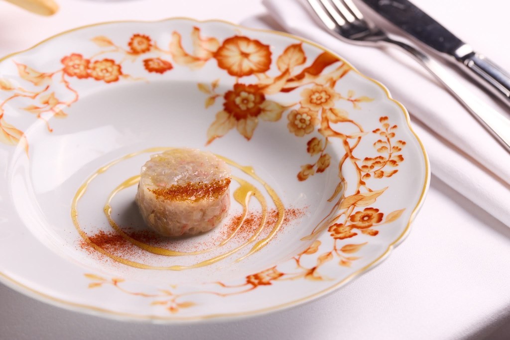 It opens with langoustine tartare paired with foie gras. An unexpected combination, yet one that works with precision. The sweetness of the shellfish meets the depth of the foie gras, creating a balance that is clean and deliberate. It sets the tone immediately, introducing the idea that familiar ingredients can still surprise when handled with control.