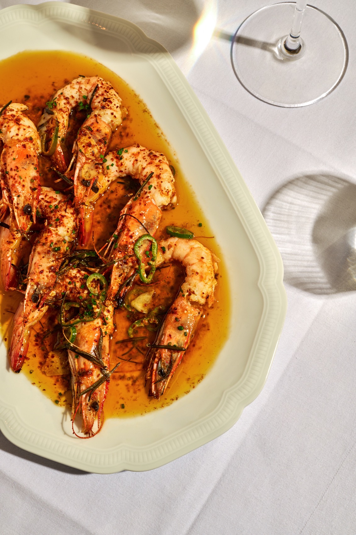 From the sea, the selection of dishes features some of Chef Ani’s best. One top choice is the grilled seabeam, a coastal French dish that was expertly filleted at the table. Coated in a zesty chilli dressing, the Grilled langoustines are another highlight, bold and full of flavour. A renowned French technique, preparing the Sole Meunière involves dredging the sole fish in flour, then pan-frying it into a crispy, golden texture.