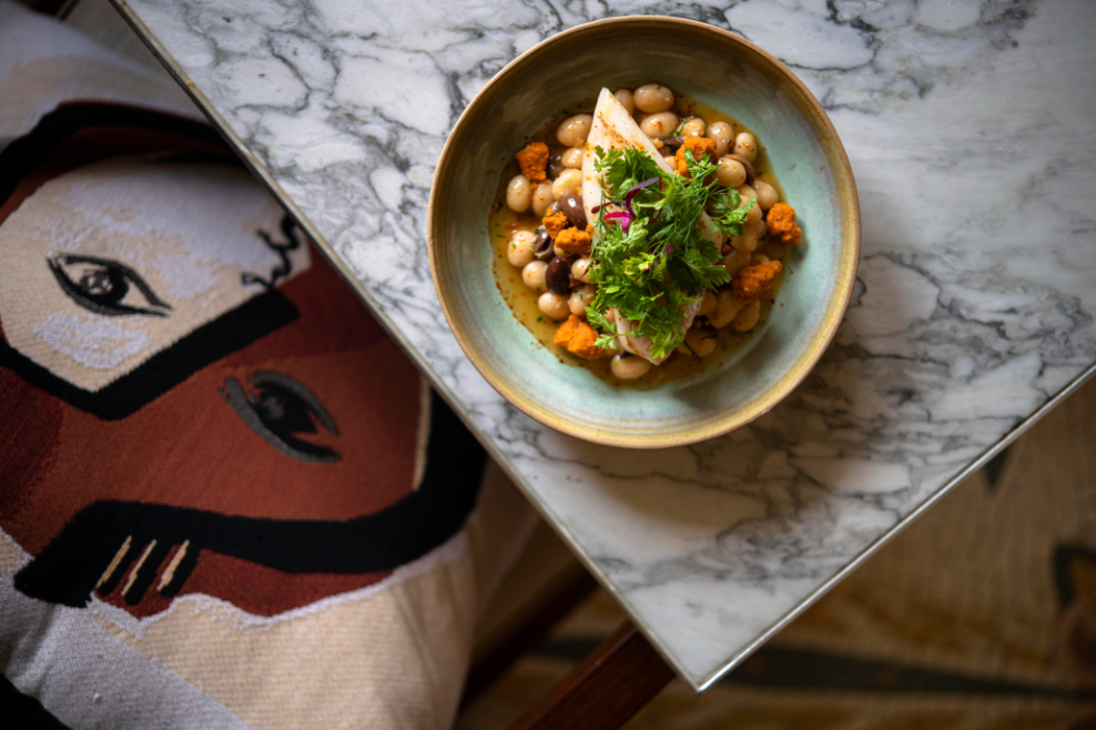 Though Le Dali is the more informal dining option at Le Meurice, it’s theatrically designed by Philippe and Ara Starck to echo the artist’s eccentricity. Dominated by a hand painted canvas that drapes the ceiling, it’s a dramatic room. Furniture is bold and mismatched, but the colour scheme of gold, caramel and chocolate brown unites the space. When we arrived a jazz trio were playing, while tables were filling with what looked in the most part like an international audience, guests, rather than Parisians.