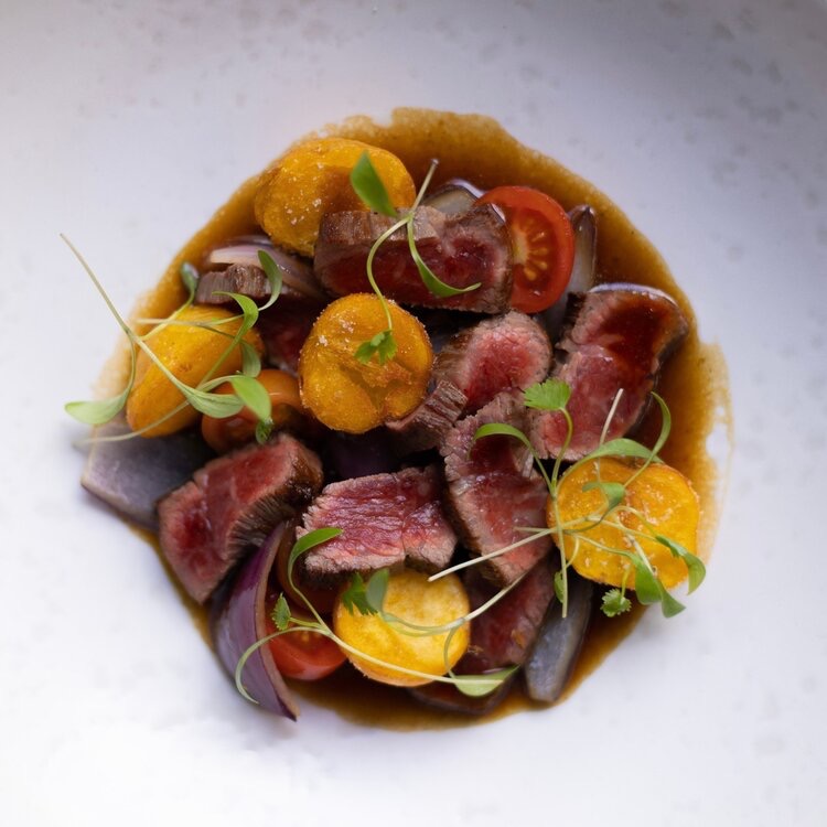 To begin, try their oyster with basil foam and togarashi, a delicate starter combining the briny sweetness of oysters with basil’s fresh aroma and togarashi’s spiciness. Another highlight is the ceviche mixto Nikkei, a vibrant mix of seabass, gambass, and octopus marinated in Nikkei tiger’s milk, served alongside sweet potatoes. We could have drank a pint of thay milk! For non-seafood options, the Peking Duck Croqueta excels — paired with creamy ají amarillo aioli — the texture here really stands out.