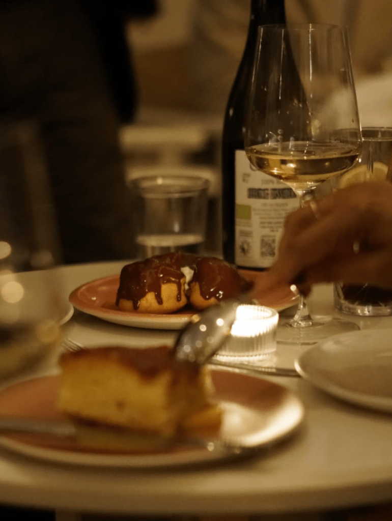 Then came the Pâtes au Pistou, spinach linguine so fresh it tasted like it had been made that morning, which it probably was. The basil sauce from Nice is herbaceous without being showy, fragrant but restrained. It’s the kind of dish that explains why people in the South of France don’t need complicated food. We passed forks around the table, each person understanding without speaking that this was meant to be shared.