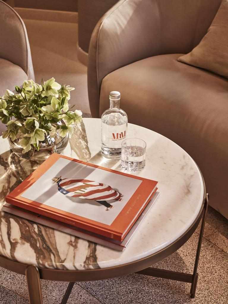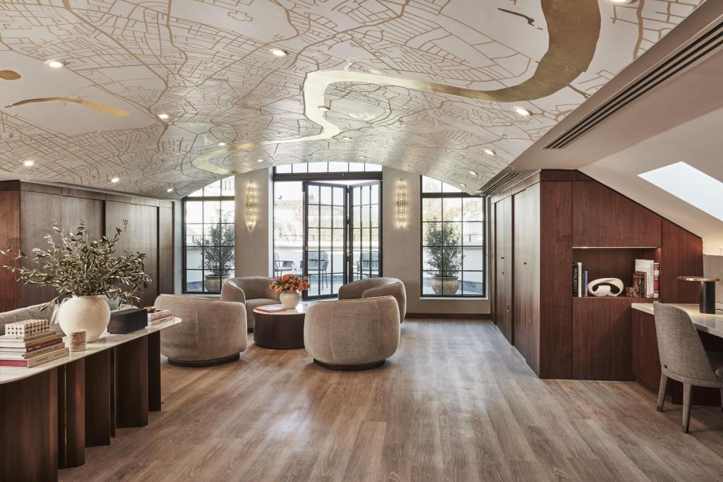 Art is woven through every floor of MhM London, curated in collaboration with Ackerman Studios to encourage reflection, connection and a strong sense of place. Visitors are greeted by a calming work by artist Ewan David Eason at the entrance, while a vast, gilded map of London painted across the vaulted wellness room ceiling turns the top floor into an immersive, contemplative space with views across Kensington and Chelsea.