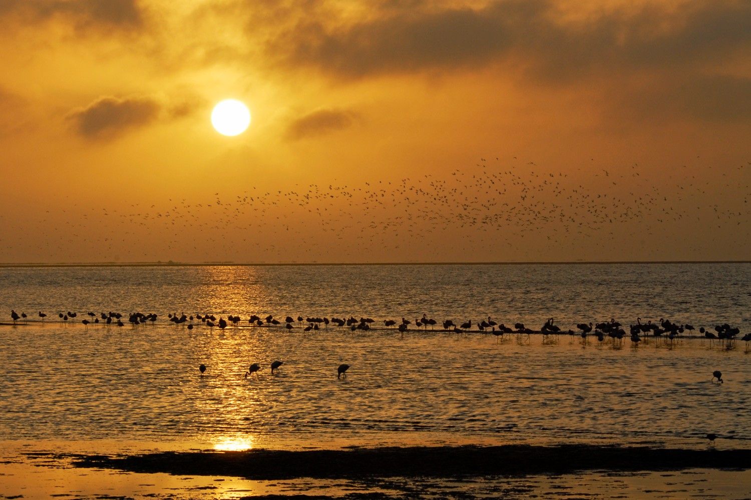 Up, up into another world of sand dunes, dazzling against the never-ending blue of the sky. Our journey took us to the very top, and we clambered out to gaze down at the beauty of Sandwich Harbour, a UNESCO world heritage site. It’s a former port that used to service the 18th and 19th-century whaling ships which sailed down this coast but is now uninhabited. There is a real beauty to driving up and over the sand dunes, the stark ridges, and the sharp edges of the sea meeting the land. Driving down the steep dunes in the 4*4 was controlled madness, unbelievably exhilarating, and laugh-out-loud fun. At the bottom we were certainly ready for the sundowners – gin and tonics and snacks – served up by the guides. We reached the bottom and drove back to the real world of Walvis Bay and the end of a fabulous day.