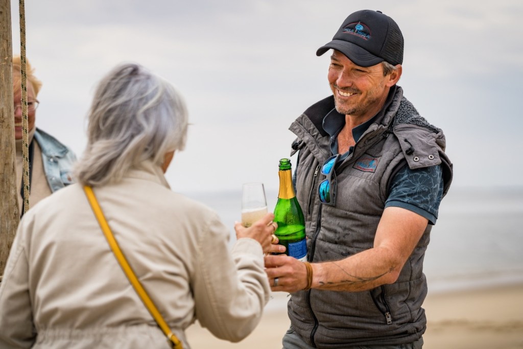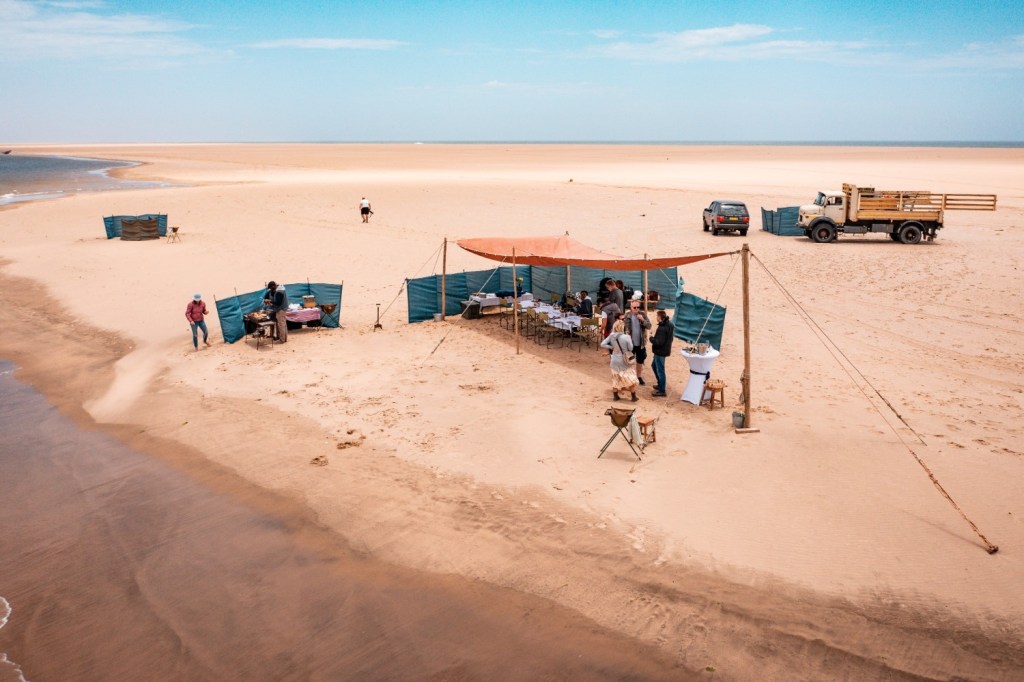 I have to admit, I was really looking forward to this and it definitely didn’t disappoint. We stepped from the boat onto the uninhabited beach at Pelican Point to be greeted by a friendly face offering a very much-appreciated glass of sparkling wine. Everything was beautiful, a long table shaded with an awning, a crisp white tablecloth, and well-placed flowers providing stylish splashes of colours. A platter of fresh Namibian oysters, harvested only hours earlier from the Walvis Bay Oyster beds, was very much enjoyed. They were probably the most fresh and certainly the tastiest oysters we had ever tasted. These were followed by grilled Namibian crayfish, beef fillet , all cooked in front of us on the braai, and sublime salads. Another glass of wine or beer, and it was becoming increasingly hard to drag ourselves away from the many pleasures of this romantic setting.