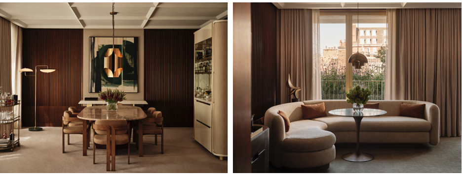The Chancery Rosewood offers the eclectic art scene of Mayfair within the beautiful luxury. The property is home to an impressive art program curated by London-based consultancy Cramer & Bell, featuring over 700 works that span media, styles, and eras. The extensive collection combines commissions from leading names such as Sir Christopher Le Brun, whose painting presides above the main fireplace, and textile artist Sussy Cazalet, whose work animates the Entrance Hall. In the guest suites, artist Anthony Grace contributes 278 surrealist collages inspired by American landmarks, historic presidents, and the visionary designs of Eero Saarinen—together creating a layered narrative that weaves architecture, luxury design and hospitality.