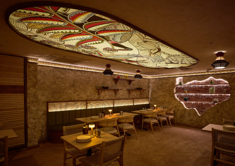 The restaurant is distributed over two levels: a lively bar downstairs where mixologists create bold Indian-inspired cocktails and a dining area upstairs that offers a cosy yet stylish space to relax and indulge.