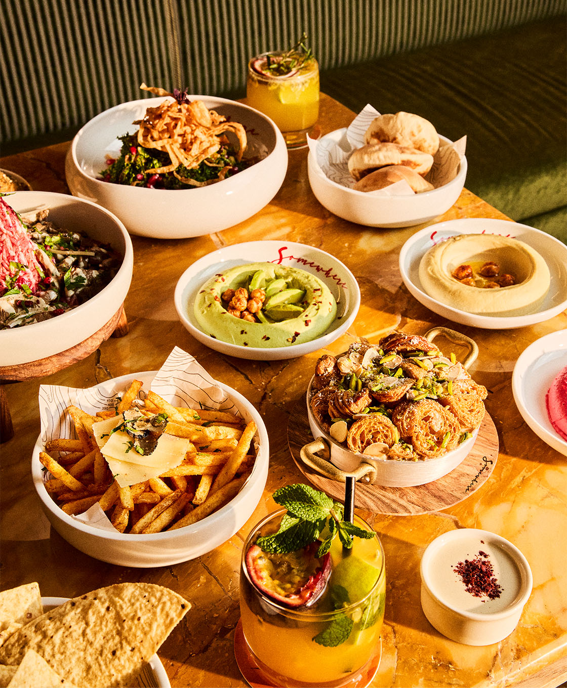 To balance the richness of the starters and mains, Somewhere offers a selection of vibrant, fresh salads that are perfect as a light bite or an accompaniment to your main course. These are generous and great for sharing.