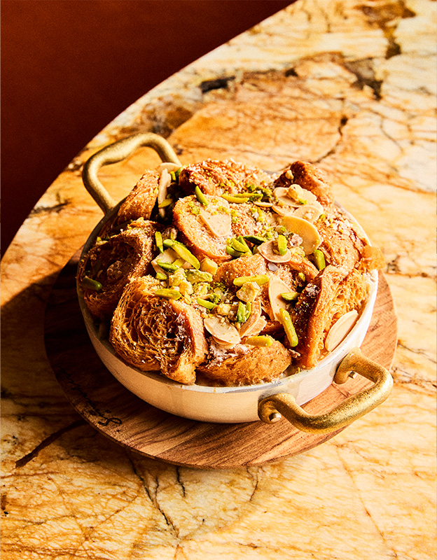 For a contemporary twist on a traditional dessert, the French Coffee Baklava offers a unique fusion of Middle Eastern and French flavours. Rich, nutty flavours complemented by smooth coffee ice cream make this a perfect treat for coffee lovers.