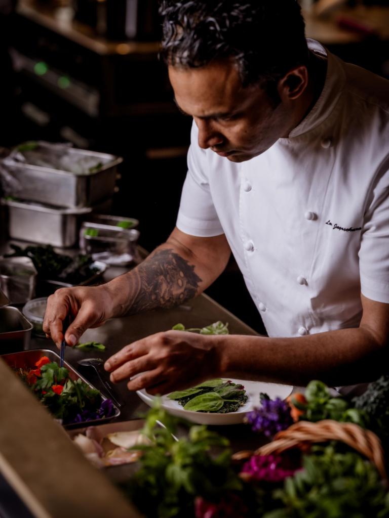 Chef Larry Jayasekara, whose Michelin-starred training spans Petrus, Marcus Wareing, Le Manoir and The Waterside Inn, opened The Cocochine in 2024 as his most personal project to date. The recent award only underscores what’s already clear: his identity is everywhere, from the Sri Lankan notes flickering through the menu to the extraordinary ingredients sourced almost entirely from Rowler Farm. The restaurant sources 95% of its produce from Rowler Farm Estate in Northamptonshire and Tanera Mòr, an island off the northwest coast of Scotland. This 1,100-acre Northamptonshire estate functions as the restaurant’s private supply chain. Larry and the team visit every Sunday to choose the week’s produce—vegetables, fruit, herbs, flowers, livestock, even the barley and wheat used in the bread. It’s rare, it’s meticulous, and it shows.