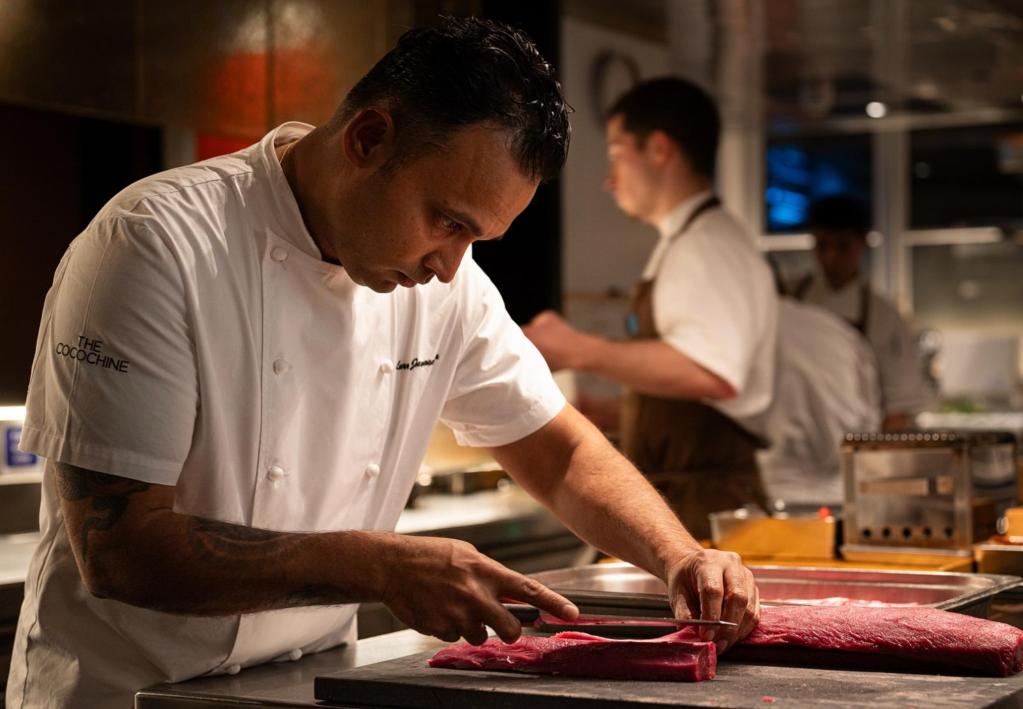 Bruton Place has quietly transformed into one of Mayfair’s most magnetic little food streets, and now it has an official accolade to prove it: The Cocochine has just won LaListe’s UK Opening of the Year award. We foresee many more awards to follow, and walking through its door, it makes complete sense. As the evening unfolded, it felt like a love letter to gastronomy, enchanting all of the senses. At first glance, warm light, low murmurs, polished wood, and walls hung with serious art. Pieces by Francis Bacon, David Hockney, Matisse and Peter Beard line the space as though you’ve stepped into someone’s impossibly cultured home. And that, I’d soon realise, is very much the point.