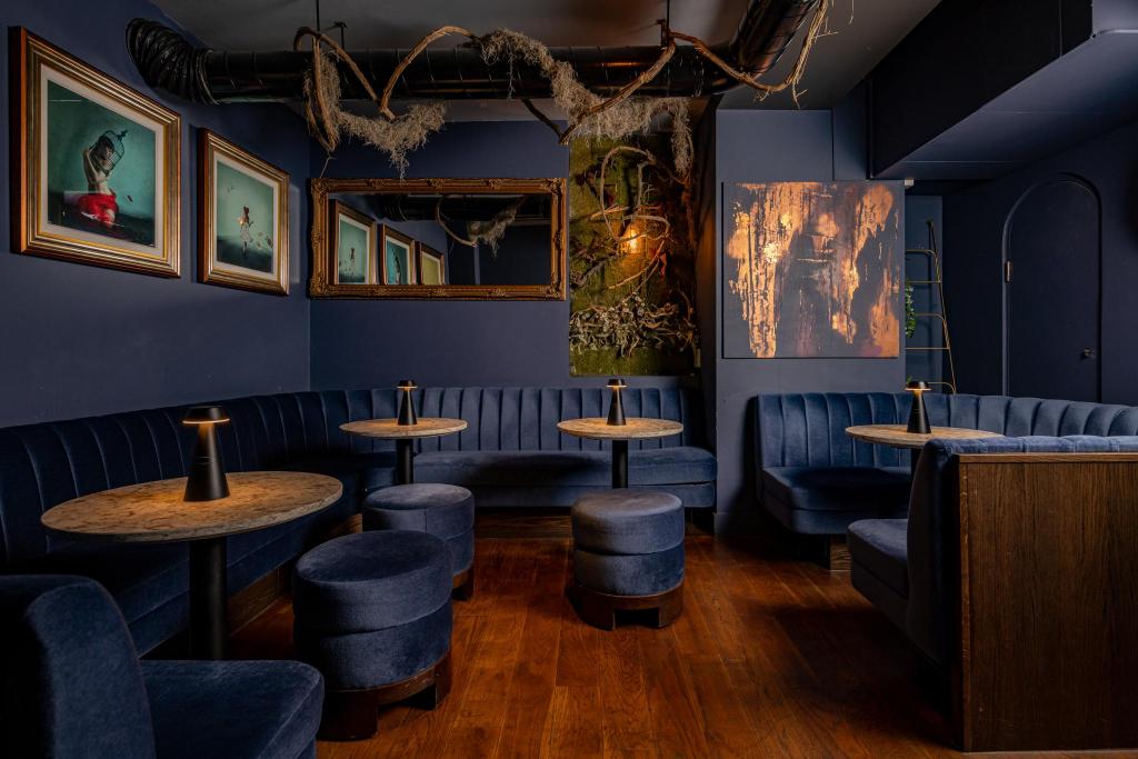The interior of Eve Bar is moody, intimate and detail-rich. With no windows and low lighting, it evokes a sense of timeless escapism. The bar lab, visible behind glass, brings a sense of theatre and transparency to the cocktail process.