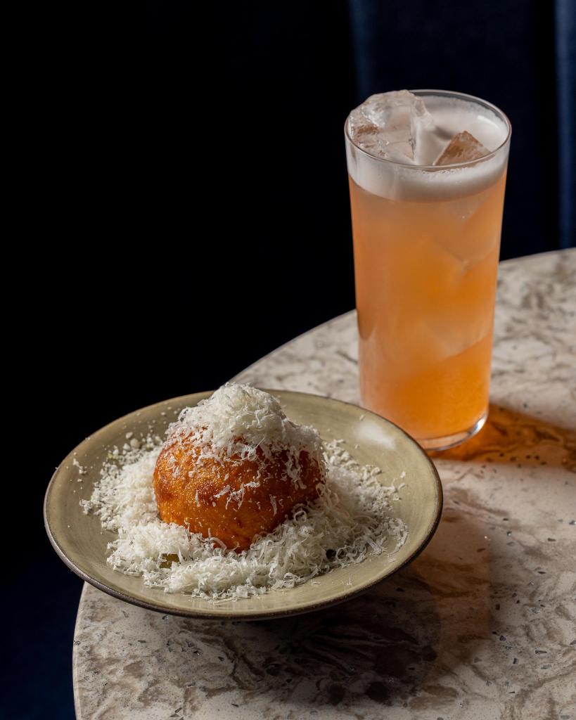 Roasted miso gives body and savoury depth to this Old Fashioned-style cocktail. Combined with whisky, salted honey and turnip syrup, it delivers a rich umami base that lingers beautifully. This was one of the best cocktails we have had this year if not ever. Using miso in mixology may sound easy but it needs a lot of skill to balance a drink.