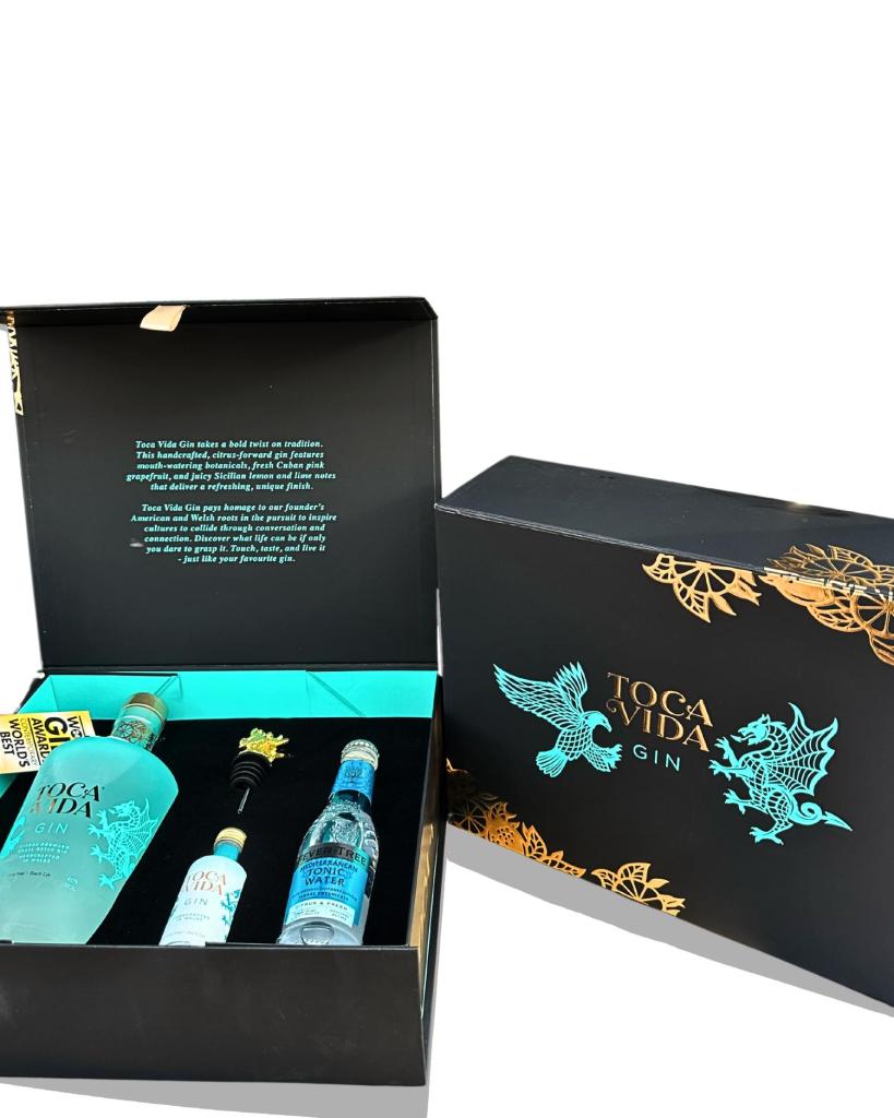The Toca Vida Gin Gift Box brings together the best of Welsh craft distilling in a beautifully presented set designed for premium gifting. Inside, you’ll find a 70cl bottle of Toca Vida Gin — an award-winning spirit crowned World’s Best Contemporary Gin at the World Drink Awards — alongside a 5cl miniature perfect for sampling or travel. A Fever-Tree Mediterranean Tonic is included to complement the gin’s vibrant botanicals, while your choice of dragon or eagle pourer adds a distinctive finishing touch. Thoughtfully curated and elegantly packaged, it’s an ideal gift for anyone who appreciates exceptional gin and refined presentation.