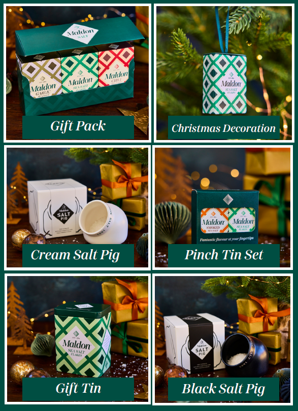 This year, Maldon launches its first-ever Christmas decoration, a beautifully intricate bauble based on a pack of Maldon Salt. The decoration is the perfect gift for foodies to hang on their Christmas tree, fireplace or wreath. Other presents that will inspire creativity and add a pinch of style to any food lover’s Christmas dining include the Maldon Salt Gift Pack – beautifully presented in elegant packaging, this trio of exceptional salt flavours is ideal for foodies or aspiring chefs. Our favourites are The Maldon Salt Pigs, made with high quality ceramic, are the presents for passionate cooks to store their salt and are available in cream or black. An ideal stocking fillers for whoever is doing the cooking is the Maldon Salt Gift Tin, a high quality, refillable tin which makes a stylish addition to any kitchen and includes a 250g box of Maldon Salt Flakes or the Pinch Tin Set featuring four unfilled tins.