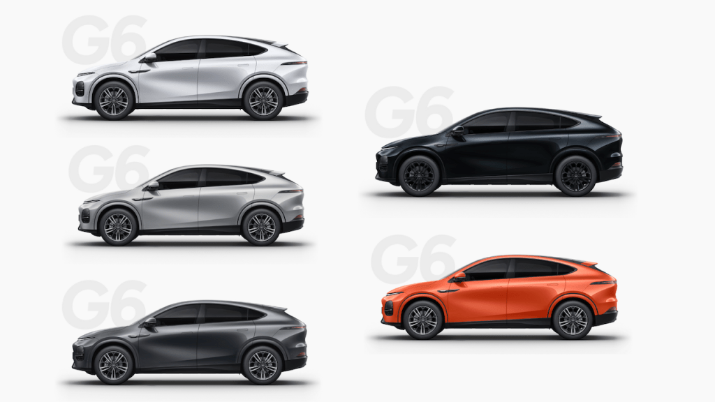 Exterior colours include Arctic White, Graphite Grey, Midnight Black, Silver Frost, and Fiery Orange, each enhancing the G6’s futuristic, coupe‑like silhouette. Interior finishes pair these with premium upholstery in black or grey, ensuring a cohesive and refined experience throughout.
