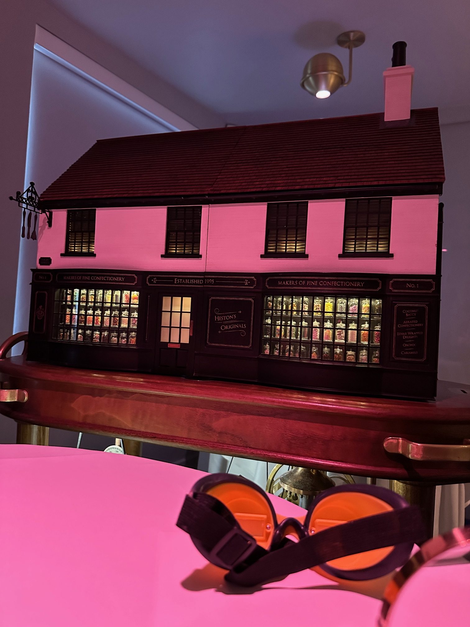 The much-anticipated menu in reverse is a thrilling ride of flavours and sensations: starting with Like a Kid in a Sweet Shop where two soft lemon pie caramels were placed in our hands complete with edible wrappers appearing from a replica model of The Fat Duck with really intricate detailing. The bill was presented with tokens (that looked edible but were not!) that are inserted into the sweet shop.