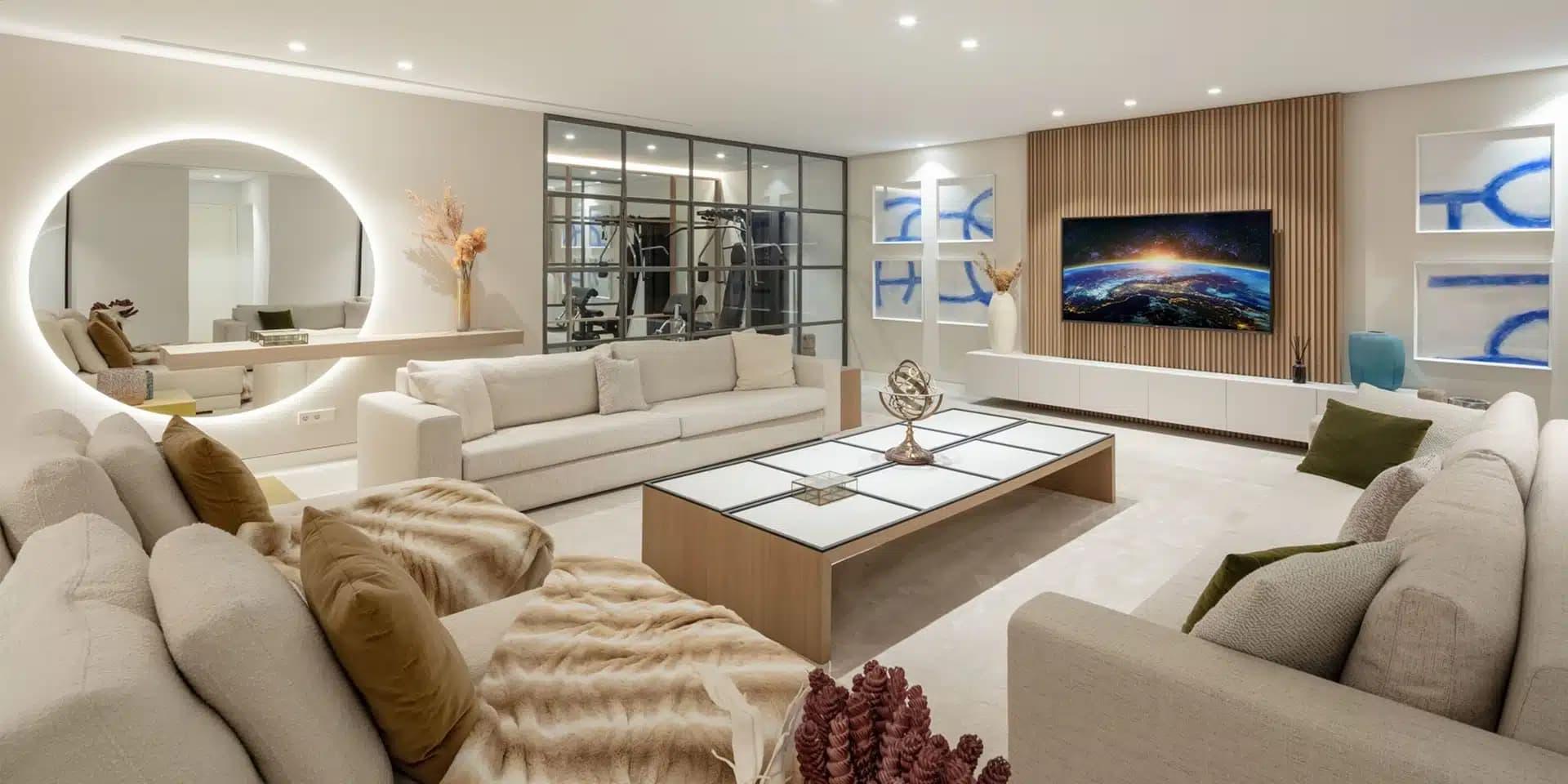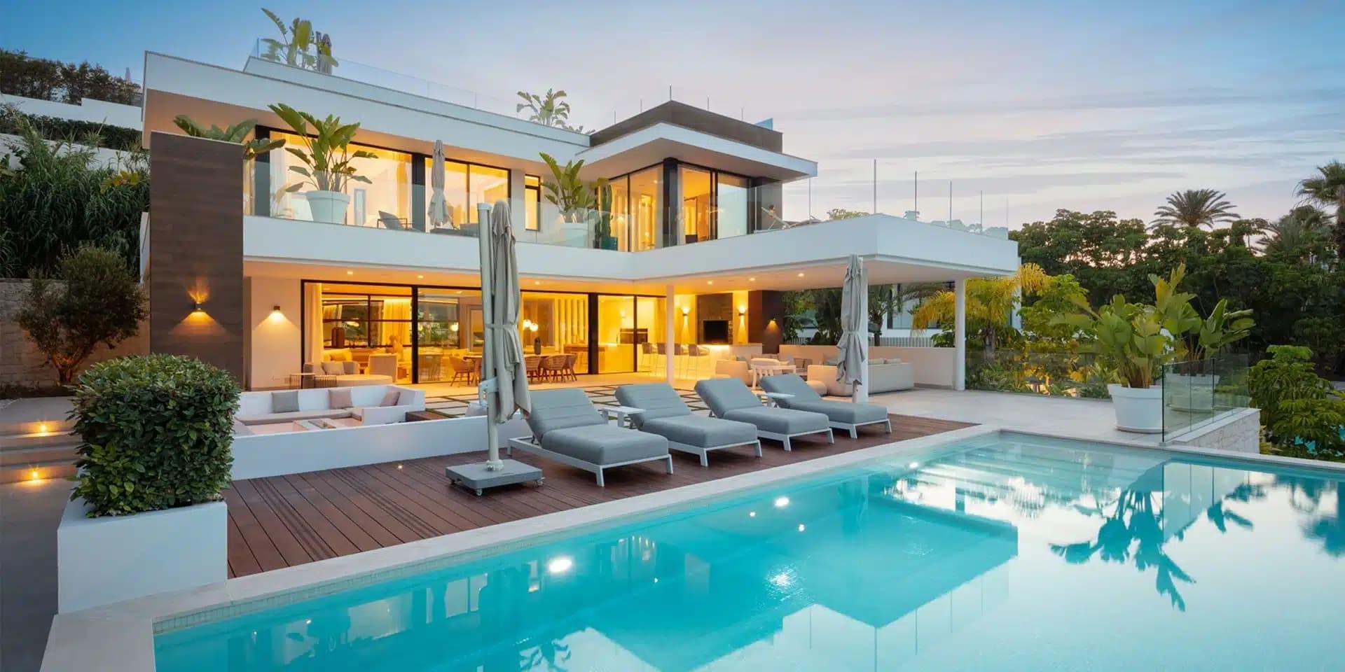We can easily imagine contestants from Don’t Hate the Player gazing longingly up at Villa Almost Heaven, wishing they could swap their camp for this lavish retreat. Both the show’s villa and our Marbella hotspot feature gorgeous pools, shaded seating areas, contemporary architecture, and luxurious interiors.